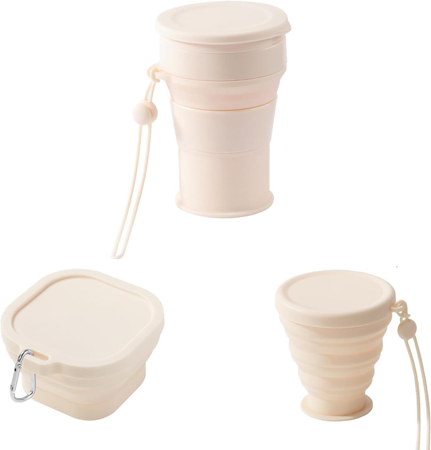 3 Pack Silicone Collapsible Travel Cup,Folding Camping Cup with Lid, Reusable Drinking Cup-Portable,Perfect for Camping,Hiking and Sport Events, for Hot and Cold Drinks (White)
