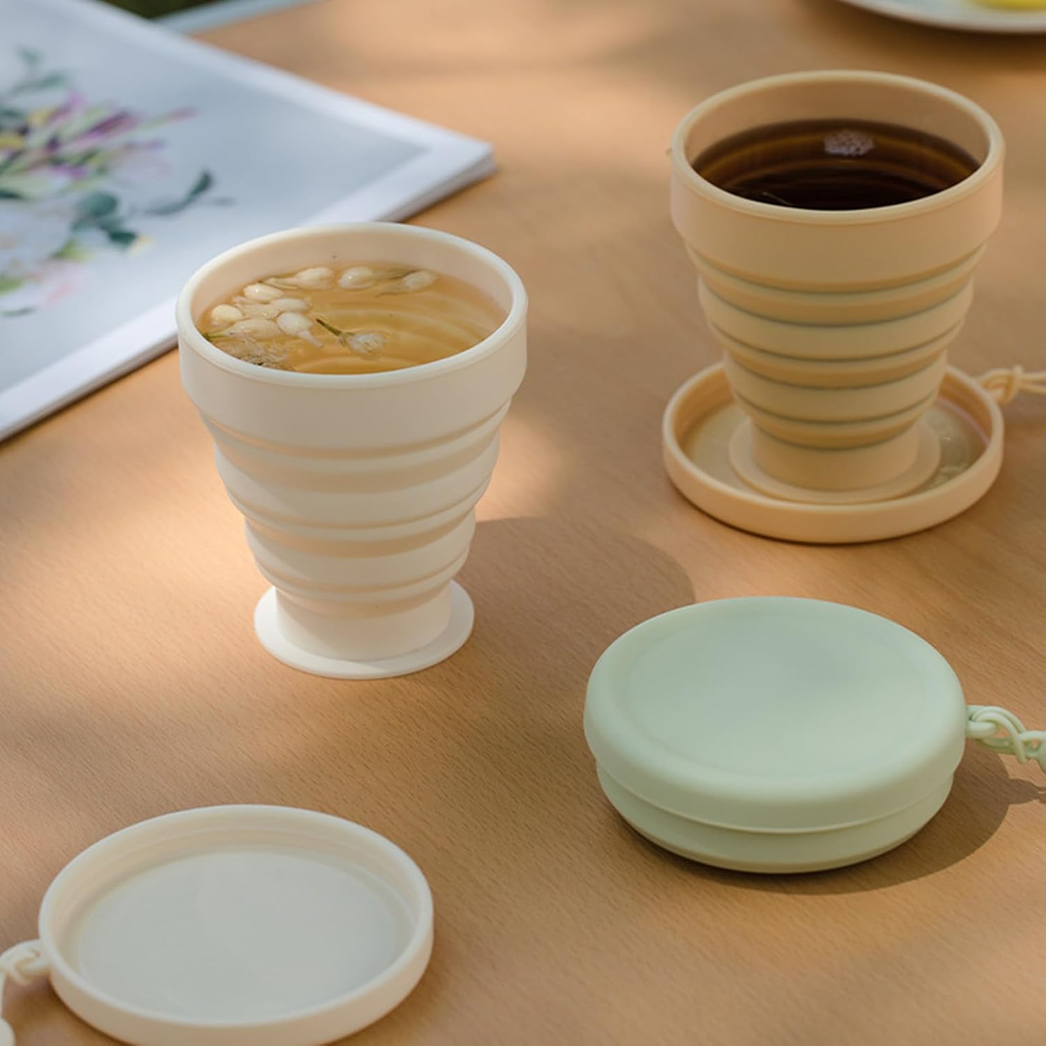- Health Materials:The collapsible travel cup made of food grades silicone,easy to wash, odorless, non-staining, durable, flexible & reusable,safe and reliable, resistant to high temperatures, both hot and ice water can be used.